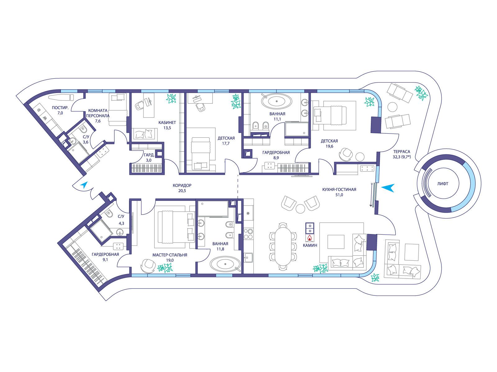 - Площадь кухни 51 м²