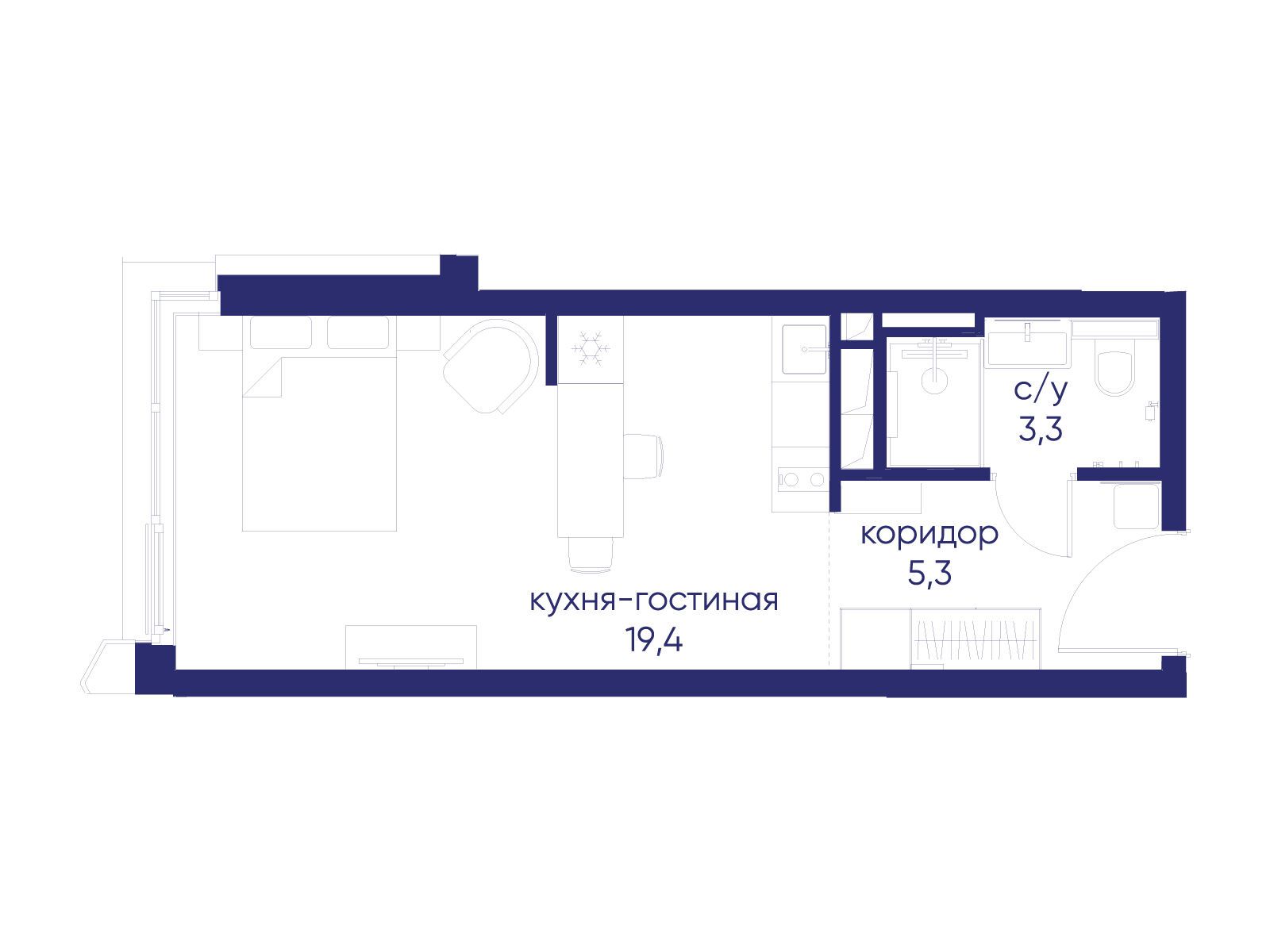 - Общая площадь 28.02 м²