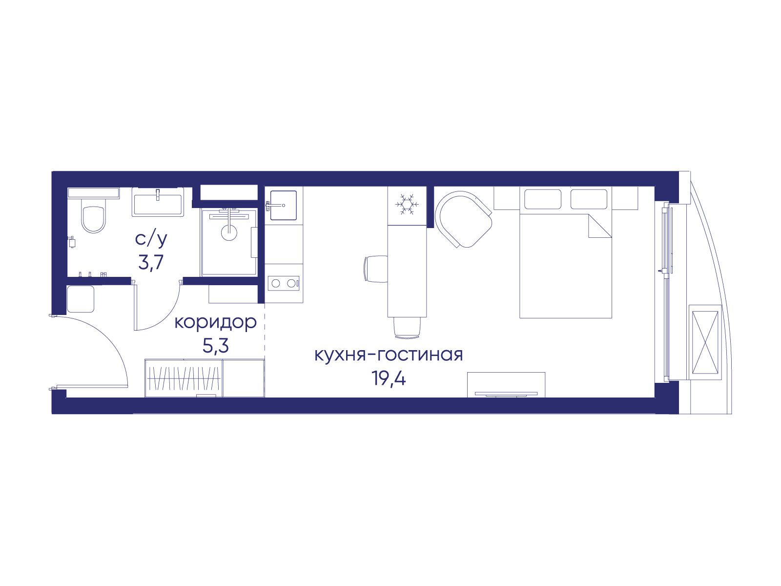 - Общая площадь 28.42 м²