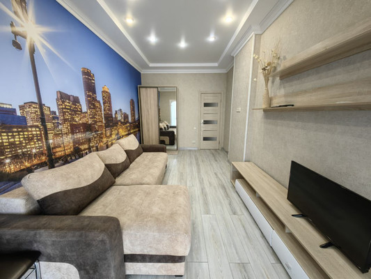 Квартира обладает продуманной планировкой: жилая площадь составляет 37 квадратных метров, а кухня занимает 20.9 квадратного метра, предоставляя достаточно места для комфортного приготовления пищи и семейных ужинов. Евроремонт, выполненный в квартире, придаёт ей особый шарм и современный вид. Санузел раздельный, что является несомненным преимуществом для семейного проживания.