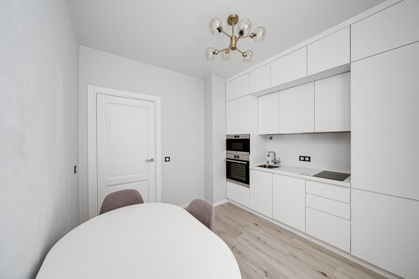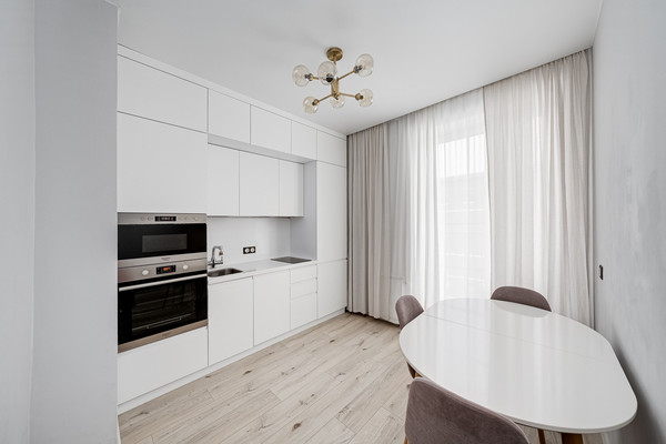Квартира светлая, очень теплая, с удачной планировкой: просторная комната, удобная кухня правильной формы, функциональный коридор, раздельный санузел. Грамотное зонирование позволяет комфортно разместить зону отдыха, рабочее место и систему хранения. Этаж оптимальный — над вами нет шума с улицы, и при этом не нужно подниматься высоко.