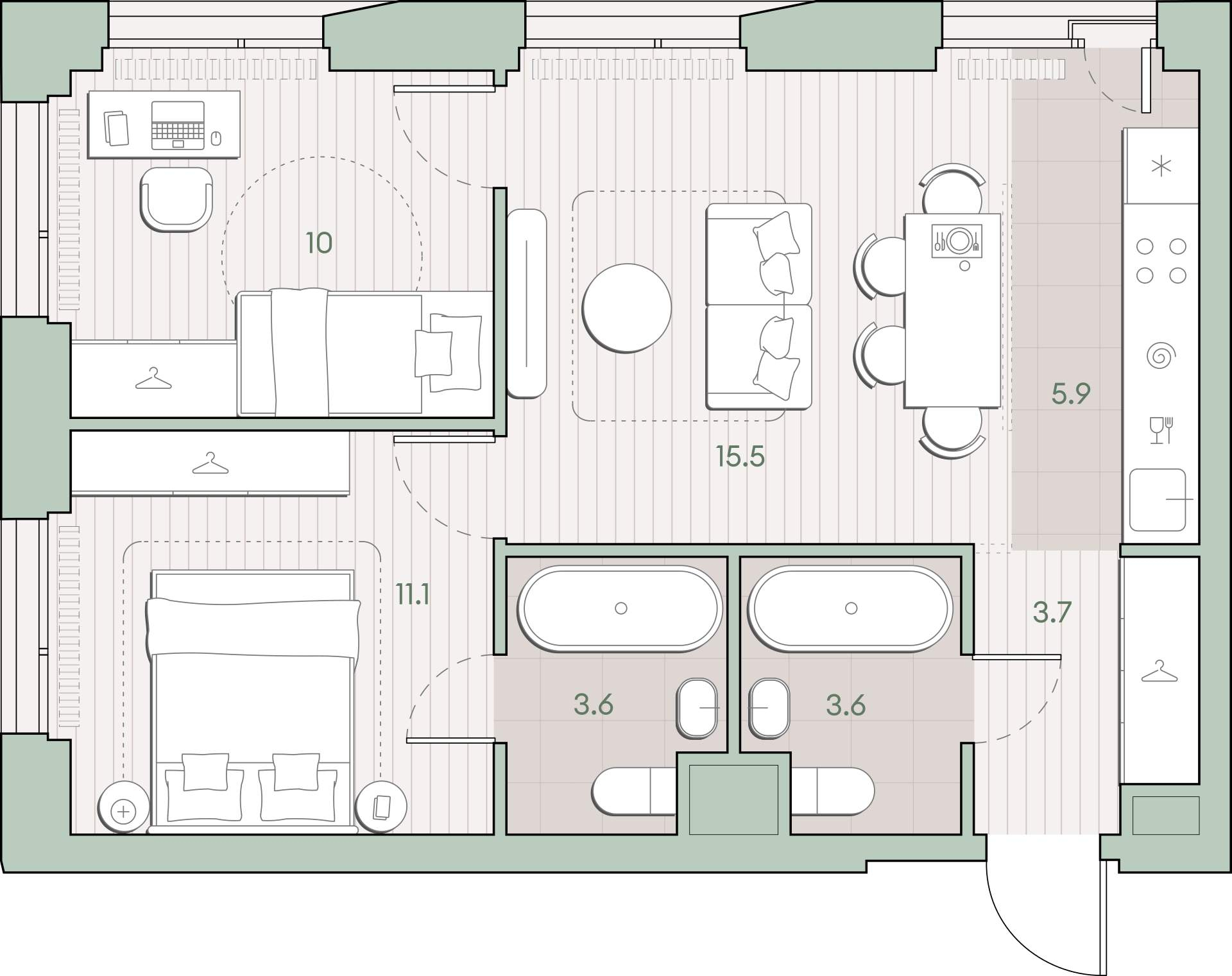 - Площадь кухни 5.9 м²