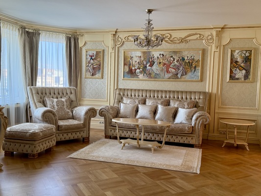 Планировкой предусмотрено: холл 14,7 м., просторная гостиная 35,9 м., спальня 13,8 м., взрослая спальня 15,4 м., кабинет 13,8 м., кухня 14,3 м., гостевой с/у, гардеробная комната, ванная комната, постирочная, душевая. Из окон открывается красивая панорама на силуэты небоскребов Москва-Сити.