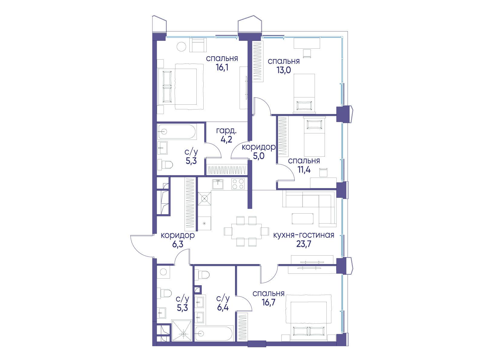 - Общая площадь 113.42 м²