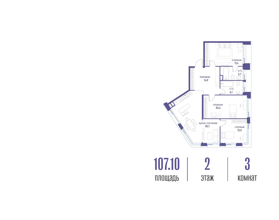 - Общая площадь 107.12 м²