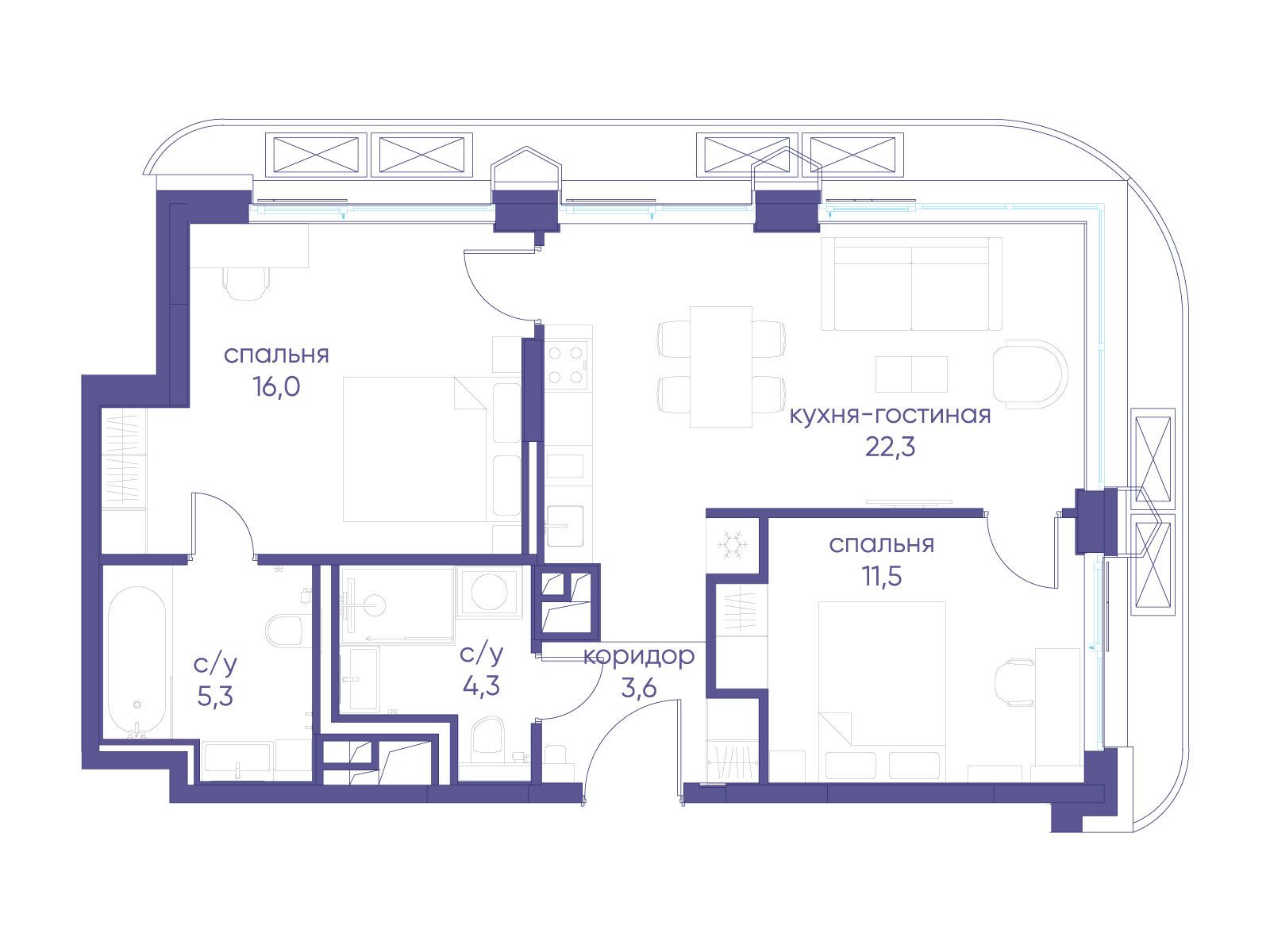 • Площадь кухни 22.3 м²