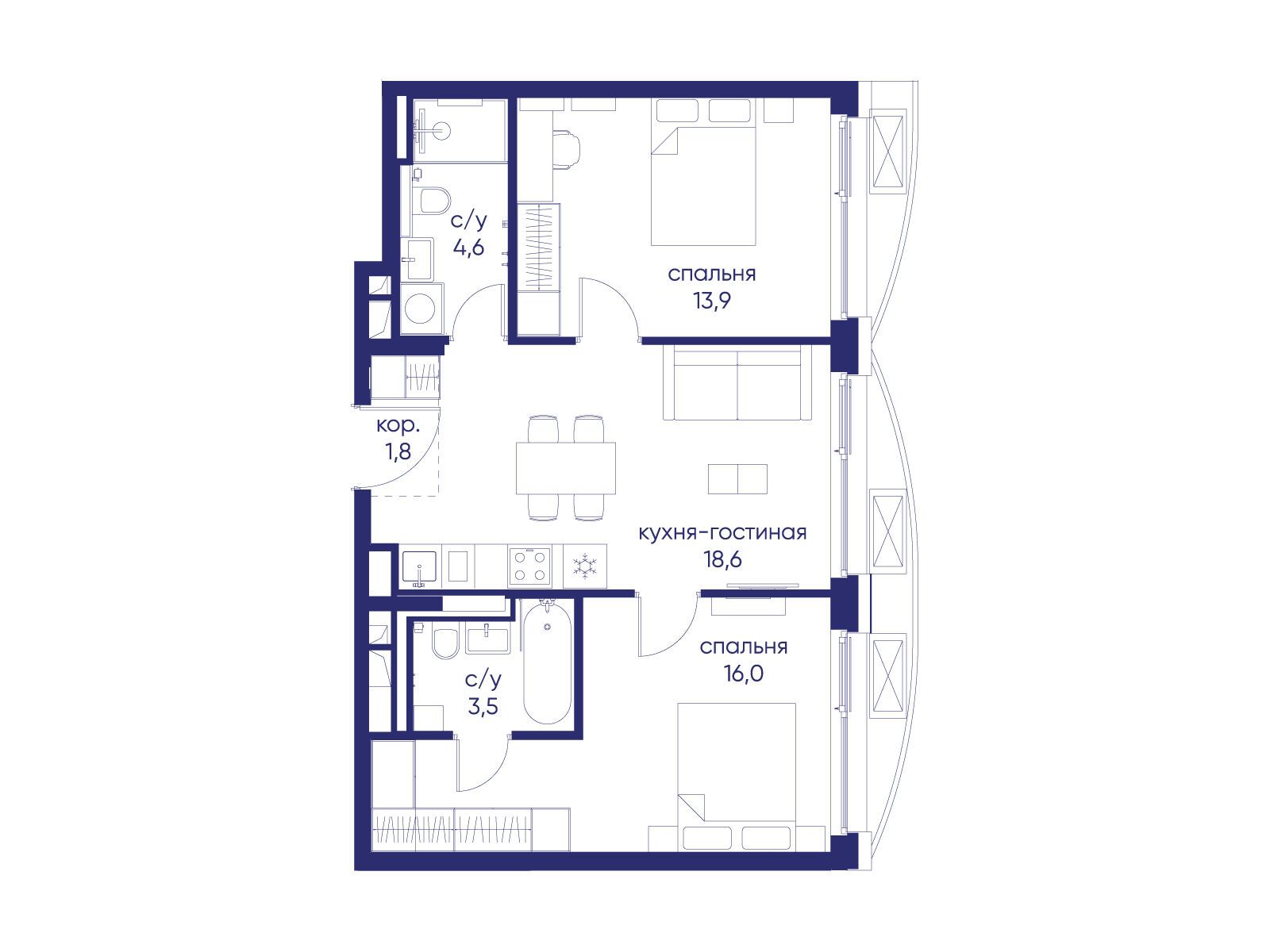 Продаётся 2-комн. квартира от застройщика: общая площадь 58.42 м², жилая 29.90 м², кухня 18.60 м², 2-й этаж, жилой квартал «Остров 14», корпус 1 (секция 1). Срок сдачи: 2 квартал 2029 года. 2 совмещенных санузла. Квартира продаётся с чистовой отделкой и мебелью! Идеальный вариант для тех, кто приобретает недвижимость для сдачи в аренду! Инвестиционный продукт для получения постоянного дохода. Остров.14 ДОХОДНЫЙ ДОМ – ЧАСТЬ ПРОЕКТА «ОСТРОВ», В 10 МИНУТАХ ОТ МОСКВА-СИТИ, В 15 МИНУТАХ ЕЗДЫ ОТ САДОВОГО КОЛЬЦА. Квартиры с отделкой и мебелью, и с управлением "под ключ" Постоянный доход для инвесторов, отельный сервис для арендаторов Востребованные для аренды планировки: студии, 1- и 2-комнатные квартиры 28-64 м2 Полная комплектация квартир: отделка, мебель, бытовая техника, кондиционеры Постоянный поток арендаторов – 10 минут от Москва-Сити, 5 минут от метро «Мневники», самодостаточная инфраструктура в квартале и собственная клубная инфраструктура в доме, спортивный, рекреационный и деловой кластеры на территории ОСТРОВА