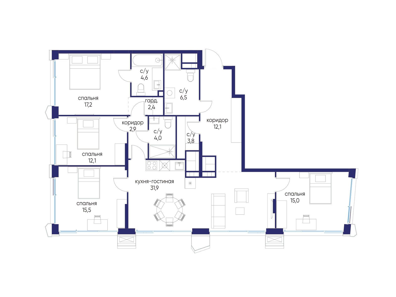 Продаётся 4-комн. квартира от застройщика: общая площадь 128.02 м², жилая 59.80 м², кухня 31.90 м², 19-й этаж, жилой квартал «Остров 14», корпус 6 (секция 1). Срок сдачи: 2 квартал 2029 года. 4 санузла (1 раздельный и 3 совмещенных). Остров.14 ДОХОДНЫЙ ДОМ – ЧАСТЬ ПРОЕКТА «ОСТРОВ», В 10 МИНУТАХ ОТ МОСКВА-СИТИ, В 15 МИНУТАХ ЕЗДЫ ОТ САДОВОГО КОЛЬЦА. Квартиры с отделкой и мебелью, и с управлением "под ключ" Постоянный доход для инвесторов, отельный сервис для арендаторов Востребованные для аренды планировки: студии, 1- и 2-комнатные квартиры 28-64 м2 Полная комплектация квартир: отделка, мебель, бытовая техника, кондиционеры Постоянный поток арендаторов – 10 минут от Москва-Сити, 5 минут от метро «Мневники», самодостаточная инфраструктура в квартале и собственная клубная инфраструктура в доме, спортивный, рекреационный и деловой кластеры на территории ОСТРОВА
