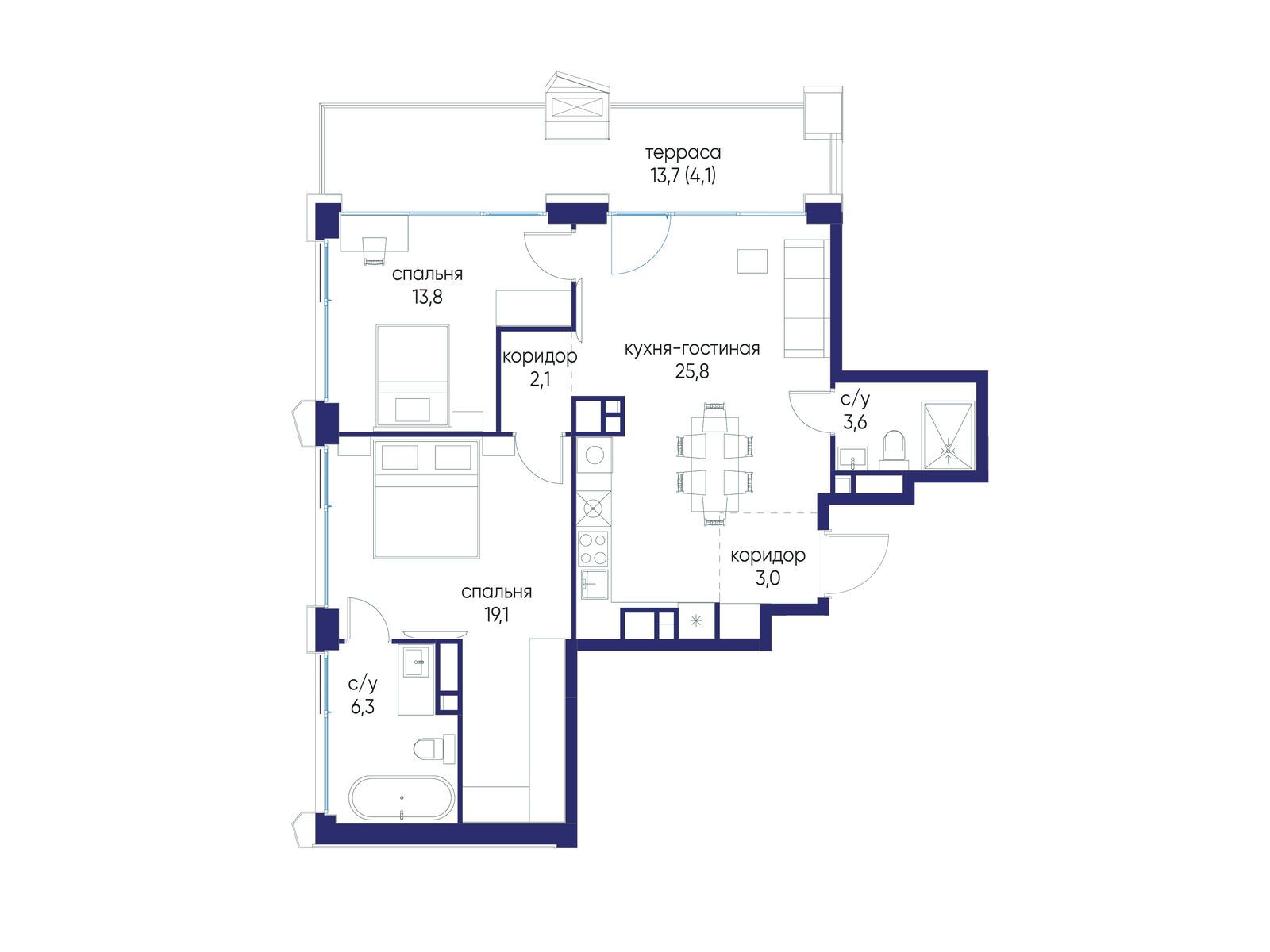 Продаётся 2-комн. квартира от застройщика: общая площадь 77.82 м², жилая 32.90 м², кухня 25.80 м², 20-й этаж, жилой квартал «Остров 14», корпус 6 (секция 1). Срок сдачи: 2 квартал 2029 года. 2 совмещенных санузла. Остров.14 ДОХОДНЫЙ ДОМ – ЧАСТЬ ПРОЕКТА «ОСТРОВ», В 10 МИНУТАХ ОТ МОСКВА-СИТИ, В 15 МИНУТАХ ЕЗДЫ ОТ САДОВОГО КОЛЬЦА. Квартиры с отделкой и мебелью, и с управлением "под ключ" Постоянный доход для инвесторов, отельный сервис для арендаторов Востребованные для аренды планировки: студии, 1- и 2-комнатные квартиры 28-64 м2 Полная комплектация квартир: отделка, мебель, бытовая техника, кондиционеры Постоянный поток арендаторов – 10 минут от Москва-Сити, 5 минут от метро «Мневники», самодостаточная инфраструктура в квартале и собственная клубная инфраструктура в доме, спортивный, рекреационный и деловой кластеры на территории ОСТРОВА