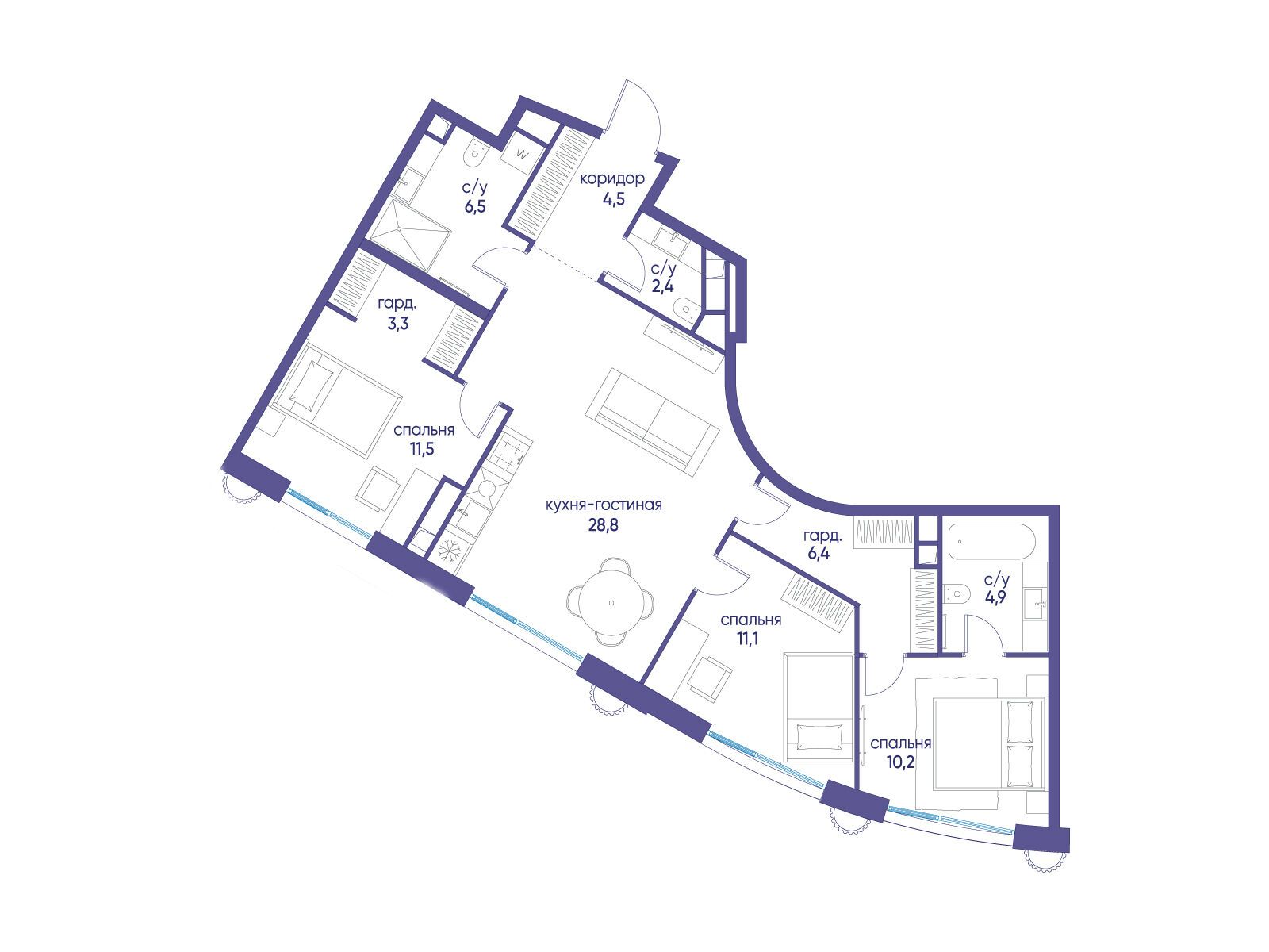 - Жилая площадь 34 м²