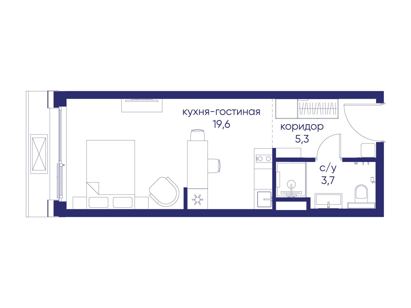 • Общая площадь 28.62 м²