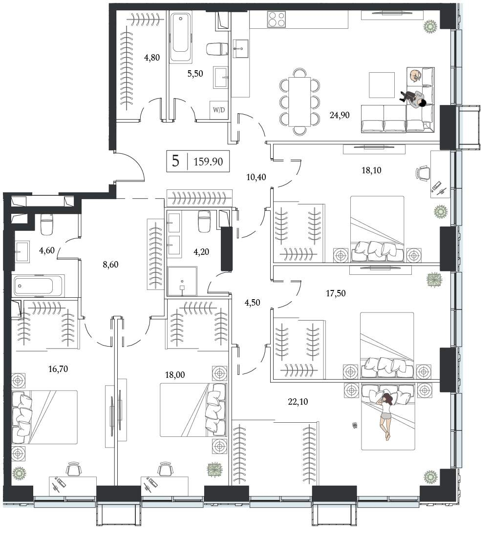 - Общая площадь 159.9 м²
