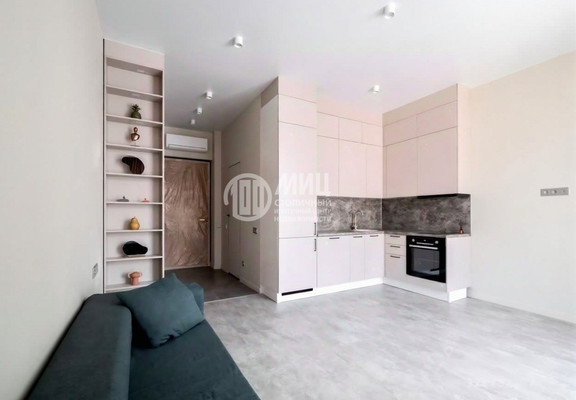 Здесь есть всё необходимое. Зона готовки, столовая группа, место для отдыха. Кухонный гарнитур оснащен всей необходимой техникой. Есть и зона для сна, и место для отдыха у окна (лаунж-зона) и дополнительные места хранения.