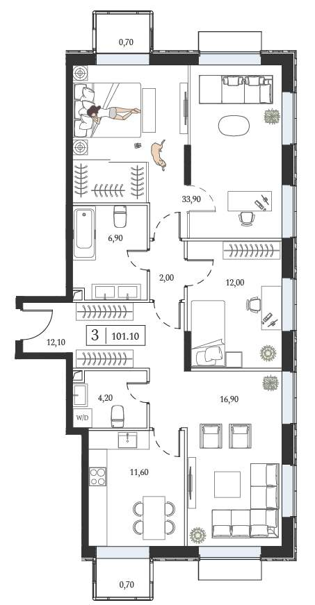 - Общая площадь 101.1 м²
