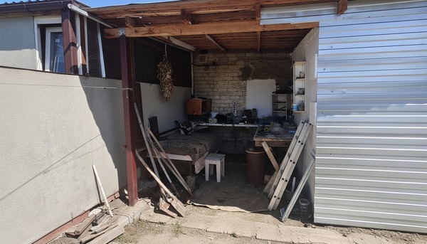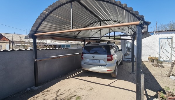 Новый навес для авто, тротуарная плитка перед входом, ухоженный двор,подсобное помещение.