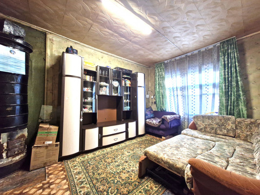 Дом был построен в шестидесятые годы прошлого века *на совесть, на века*, бревно из лиственницы. По техническим свойствам древесина лиственницы превосходит древесину всех других хвойных пород: она отличается высокими механическими свойствами, не подвержена гниению(!).Так же особенностью этого дома является огромный сухой подвал глубиной 2м, фундамент и стены подвала из бутового камня. Смотрите фото "спуск в подвал". Он со стороны улицы, не из дома.Прописка Ленобласть. В Тайцах ж. д. станция (3 км от дома), автобусная остановка в сторону Гатчины или метро пр. Ветеранов (15 мин пешком от дома). Есть школа, поликлиника, рынок, Дом культуры и пр. Скромные, вежливые соседи. По документам: полная цена в Договоре купли-продажи. Один взрослый собственник много лет. Отказы от права преим. покупки в стадии получения, выход на сделку возможен после 20 февраля. Посмотреть можно в любой день!Внимание: по Соглашению о порядке пользования эта комната будет " закреплена" за новым владельцем! Также можно пристроить крыльцо и сделать себе отдельный вход с улицы и будет у Вас "студия".По сути, это деревенская жизнь вблизи Санкт-Петербурга! Еще и с прекрасным парком под окнами!